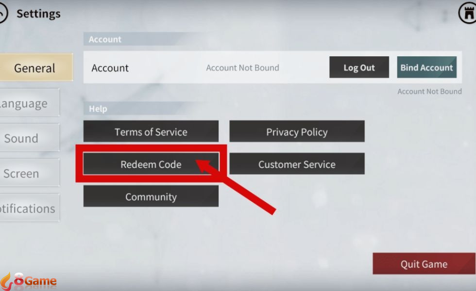 - Bước 3: Trong mục General có Redeem Code, bạn bấm vào đó.